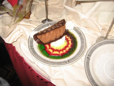 This was the candy house in the dining room. They had all their desserts around the house. Next picture is a picture of my dessert. It was a chocolate mousse taco!